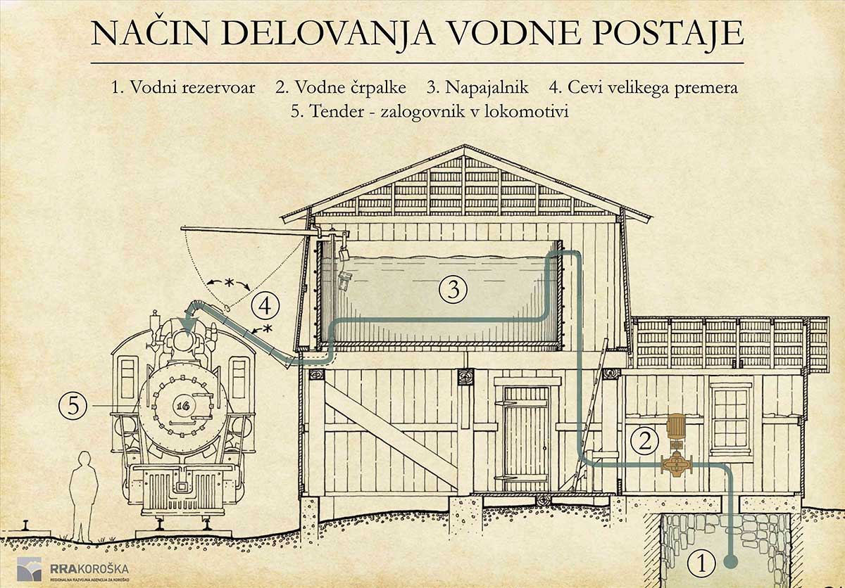 Haben Sie sich schon einmal gefragt, wofür diese Bauwerke entlang der Eisenbahnstrecke genutzt wurden? Alle Bahnhöfe benötigten große Mengen „weiches“ Wasser, um die Dampflokomotiven zu versorgen, das gewöhnlich in speziellen Gebäuden, den sogenannten Wassertürmen, gespeichert wurde. Die Wassertürme lagerten das Wasser in solcher Höhe, dass es durch Schwerkraft schnell und einfach durch Rohre in die Wassertanks (Tender) der Lokomotiven fließen konnte. Die Wasserversorgung war bei starkem Verkehr eine große Herausforderung, daher waren die Reservoirs entsprechend groß – von 20 bis zu 70 Kubikmetern.